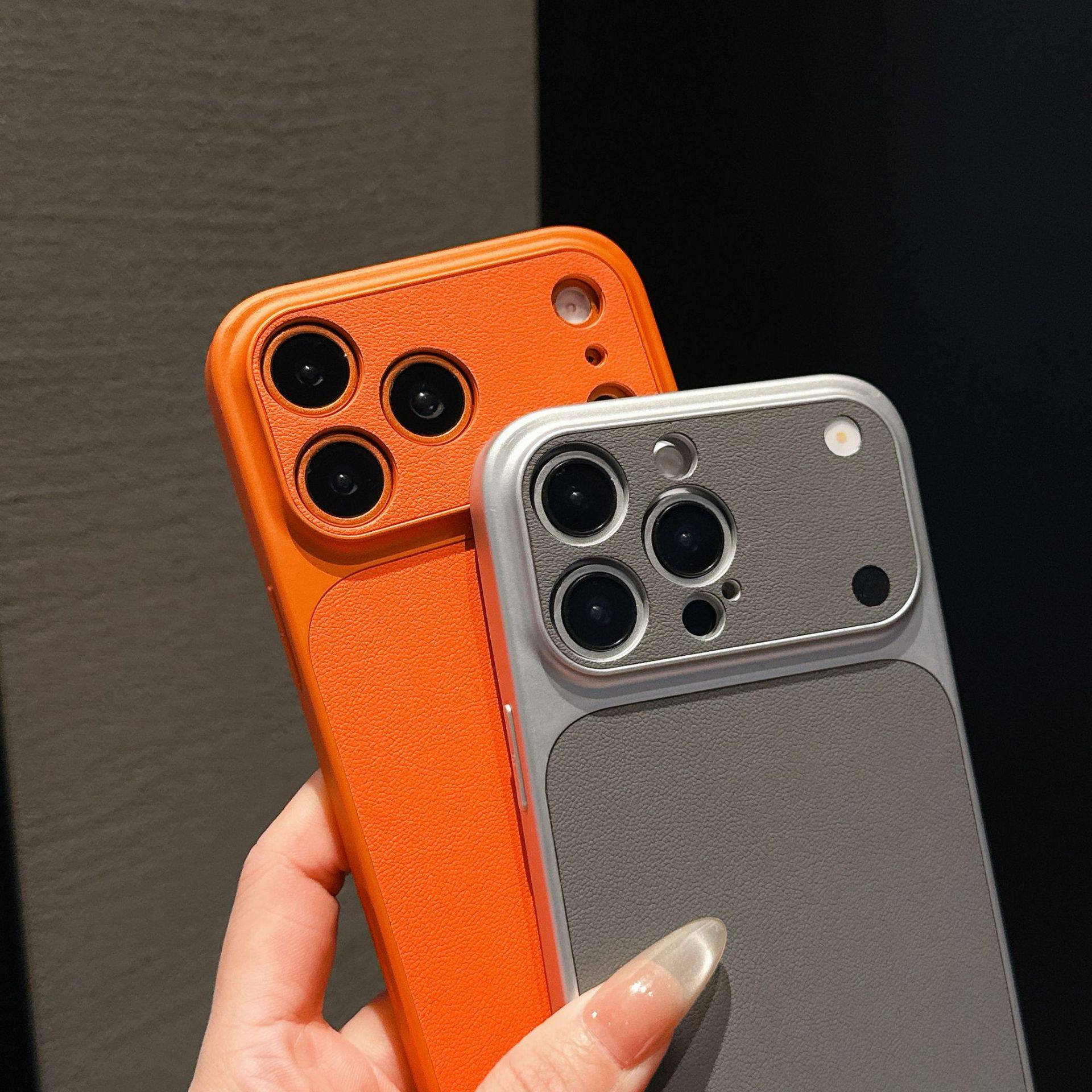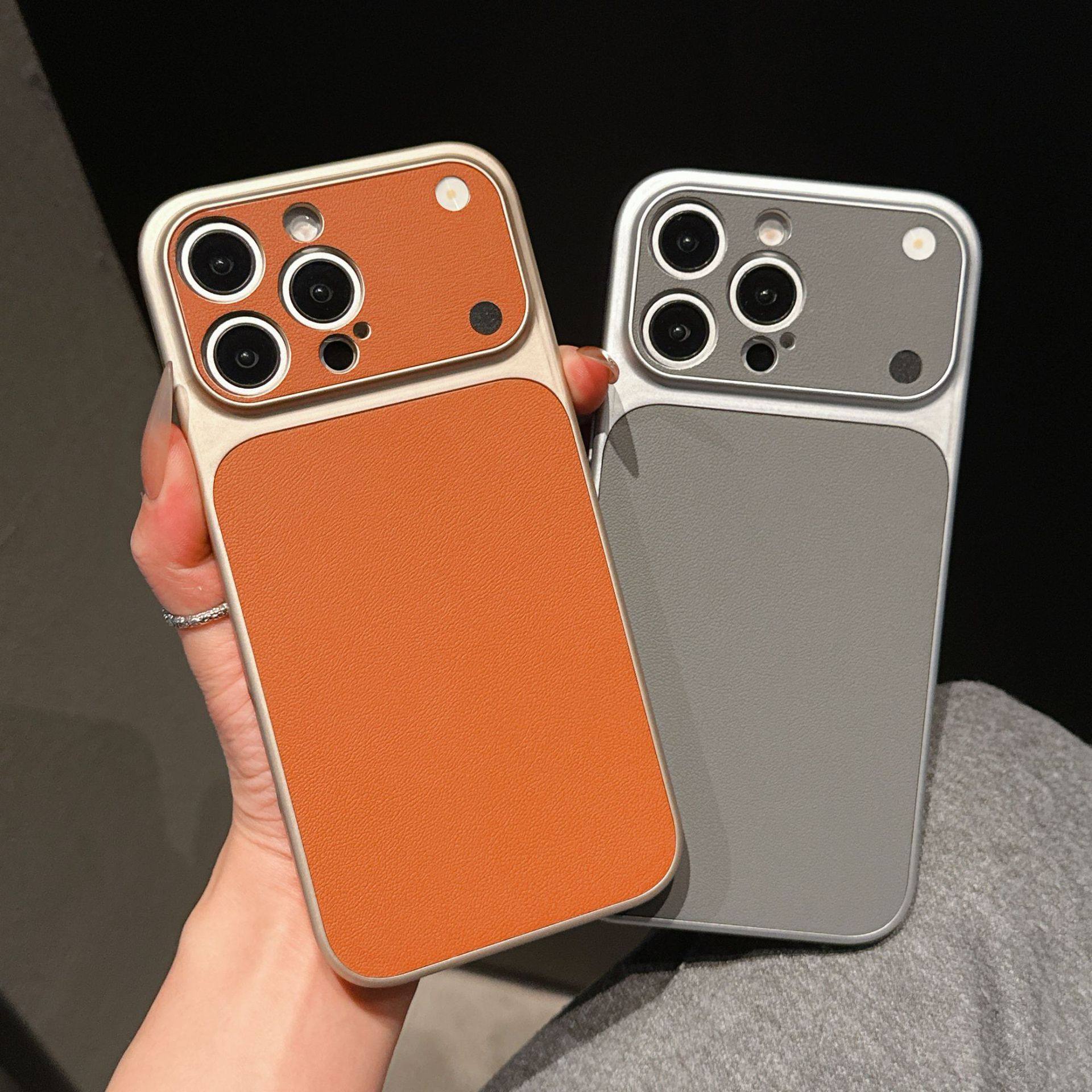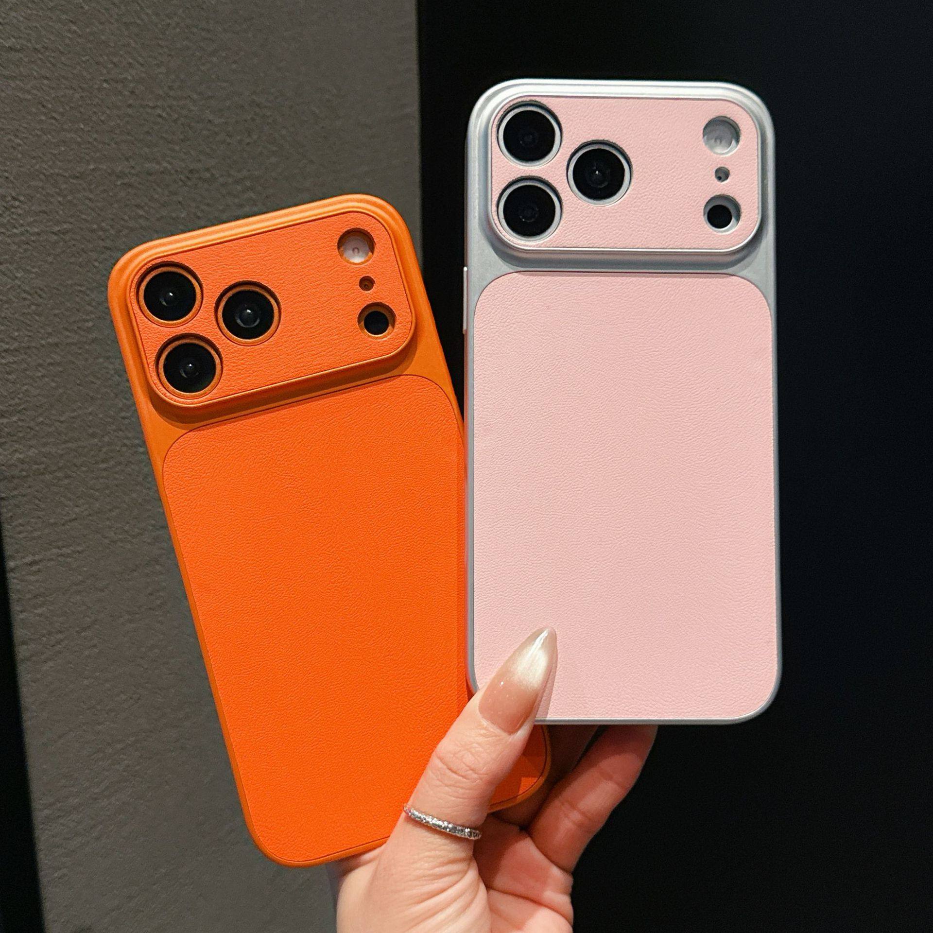 Change to 17 in Seconds, Suitable for Iphone17Promax Mobile Phone Case Plain Leather Texture Orange Apple 16Promax Frosted 15