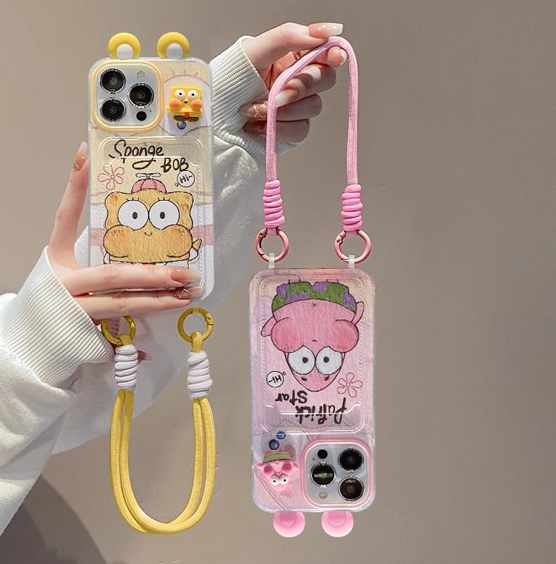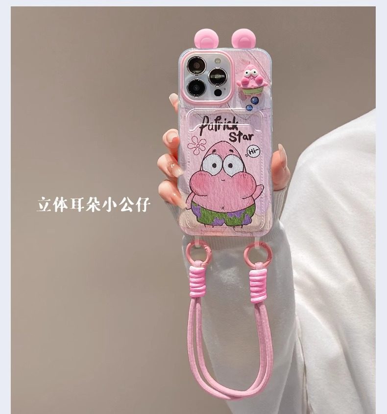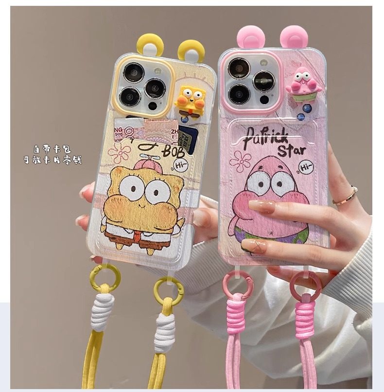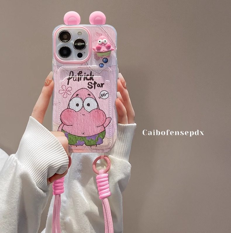 Patrick Spongebob Doll for Apple 16PRO Phone Case 15/14 Card Bag Lanyard 13 Cute Cartoon