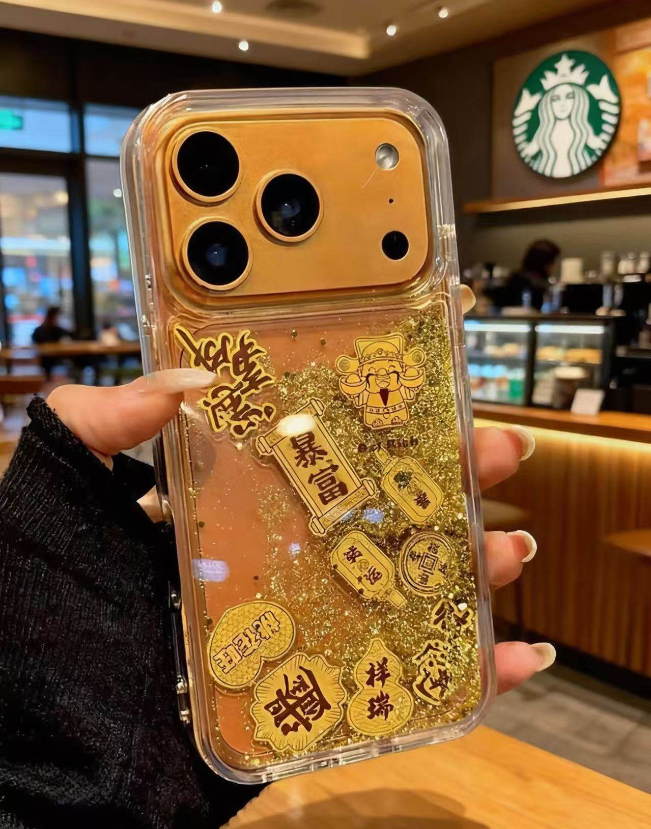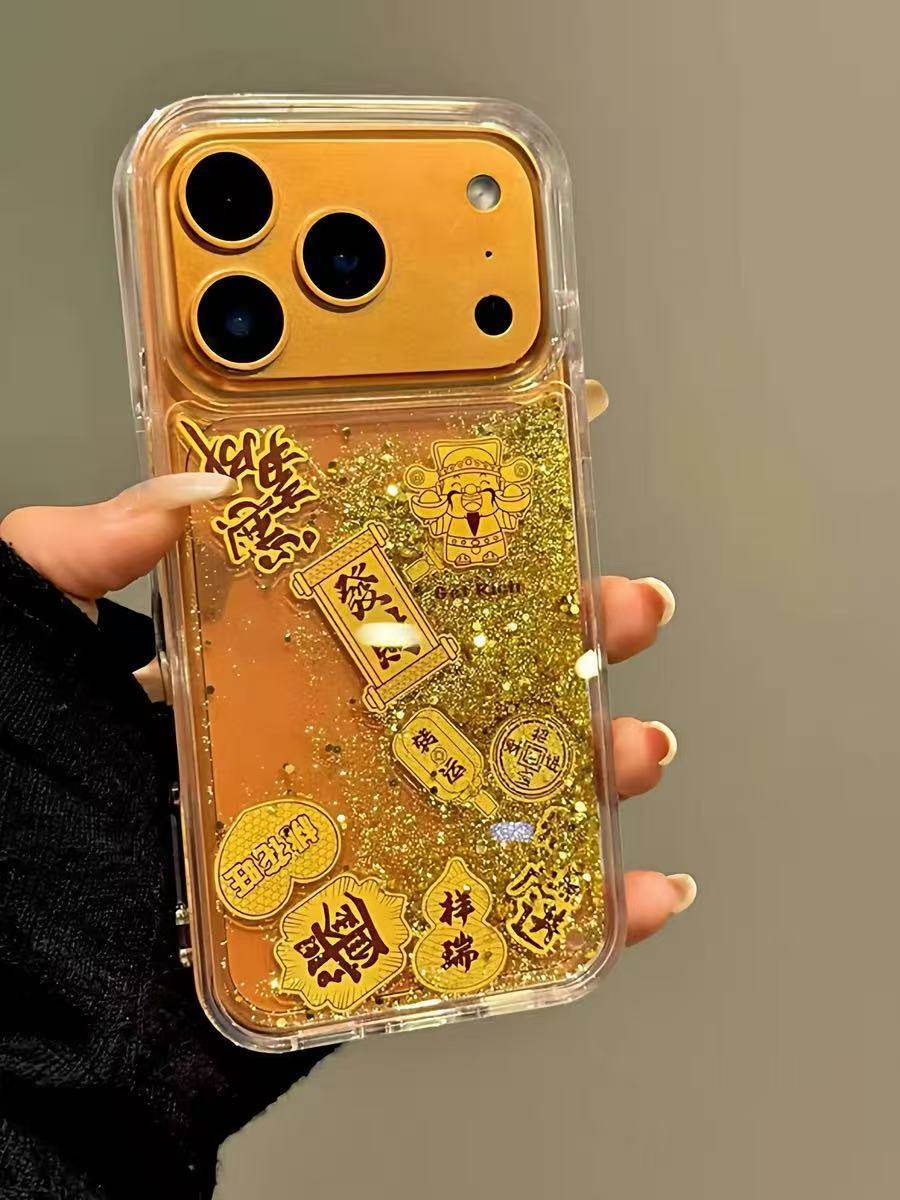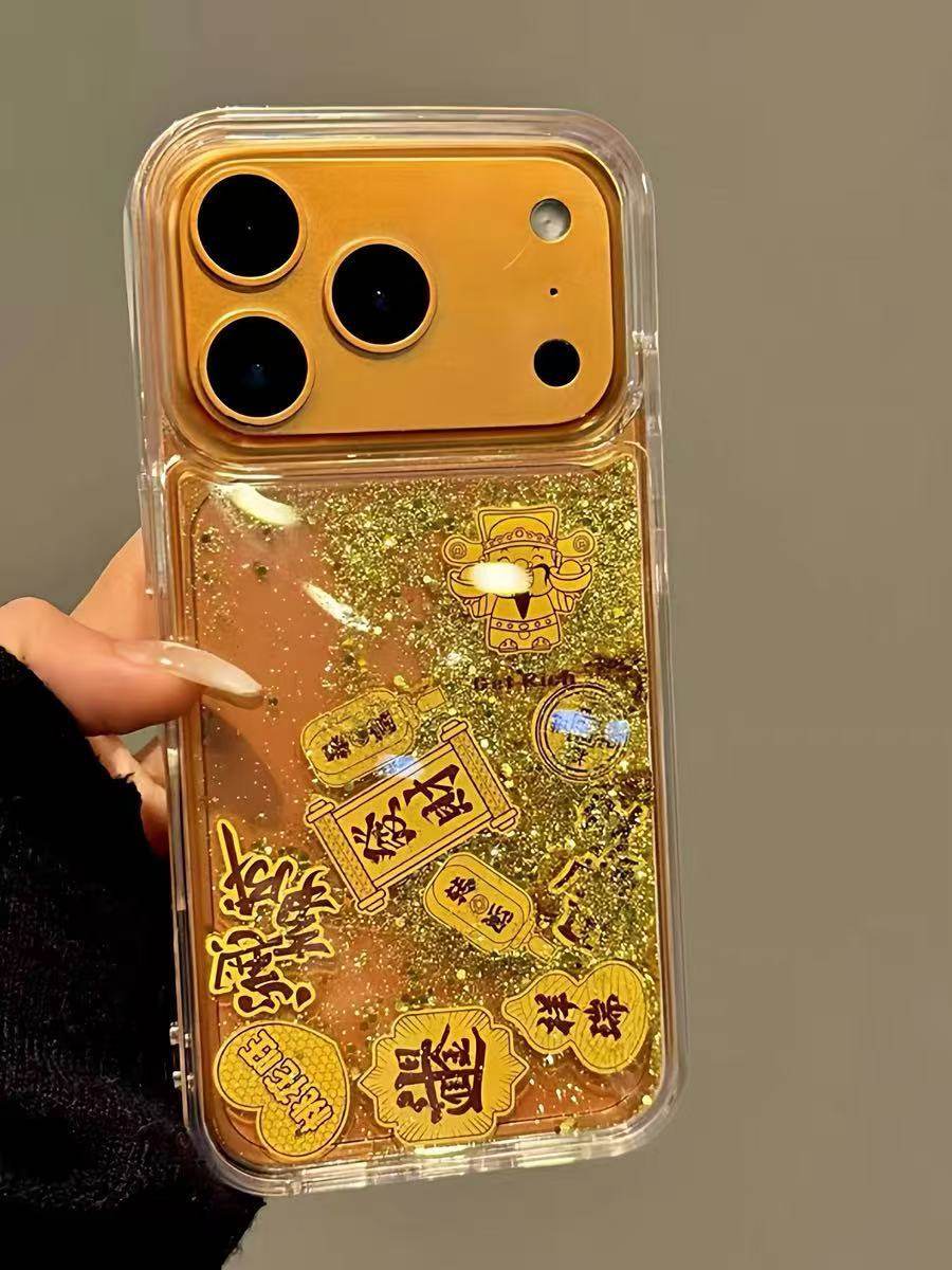 Quicksand Gold Foil God of Wealth Is Suitable for Iphone17Promax Apple 16 Mobile Phone Case Good Luck