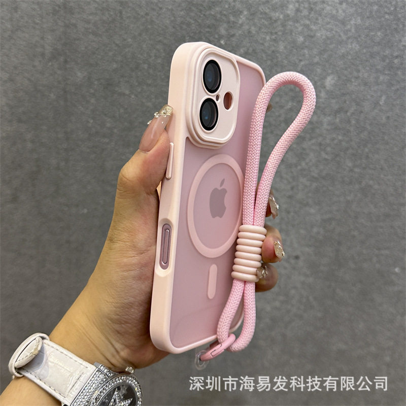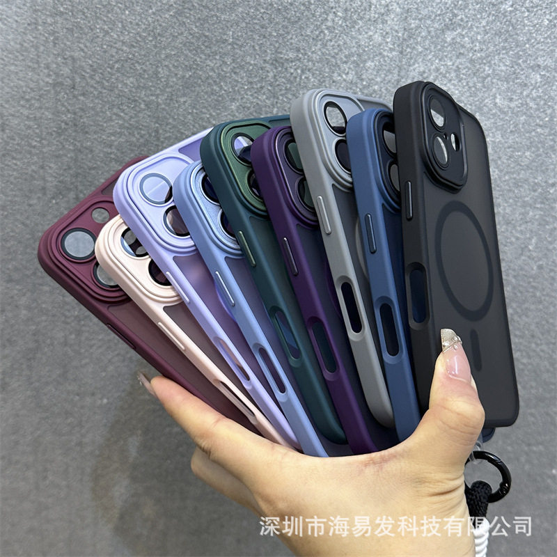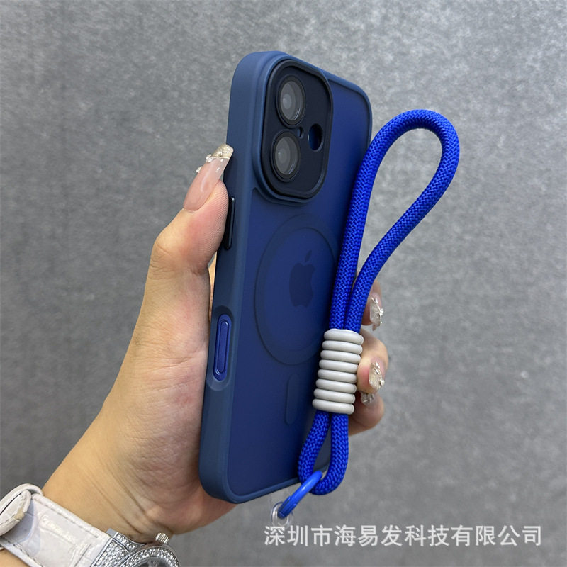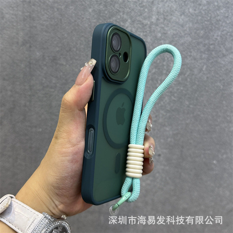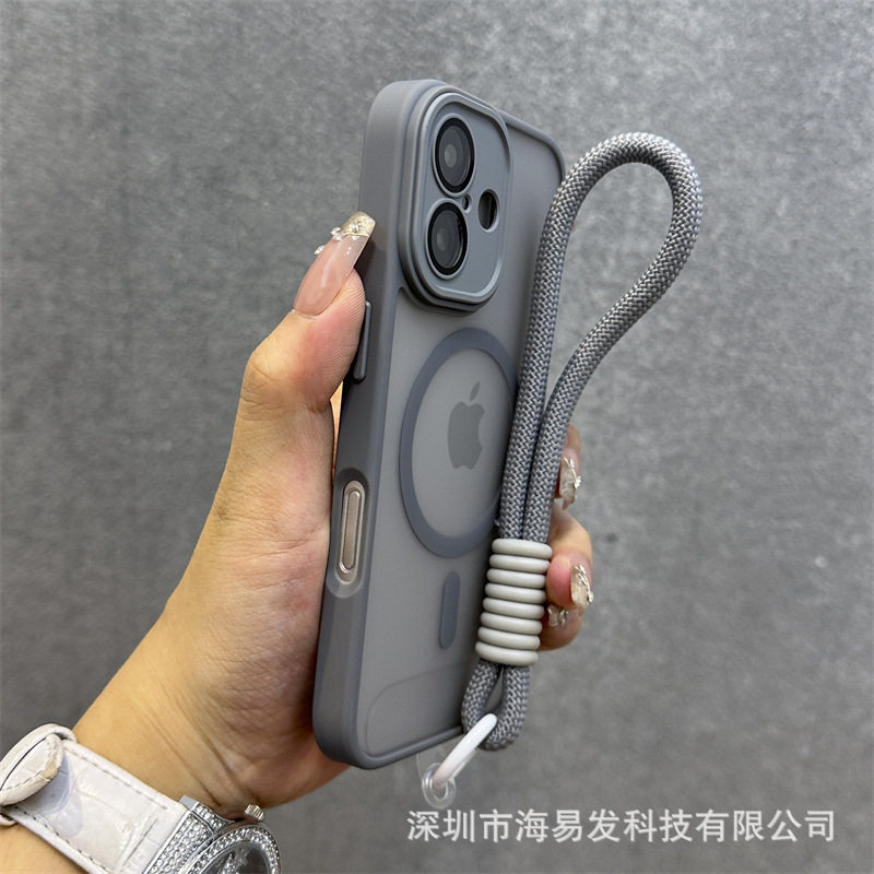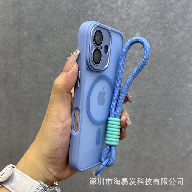 Skin-Feel Magnetic Frosted Mobile Phone Case iPhone 17 Lens Film All-Inclusive Hand Strap Anti-Fall