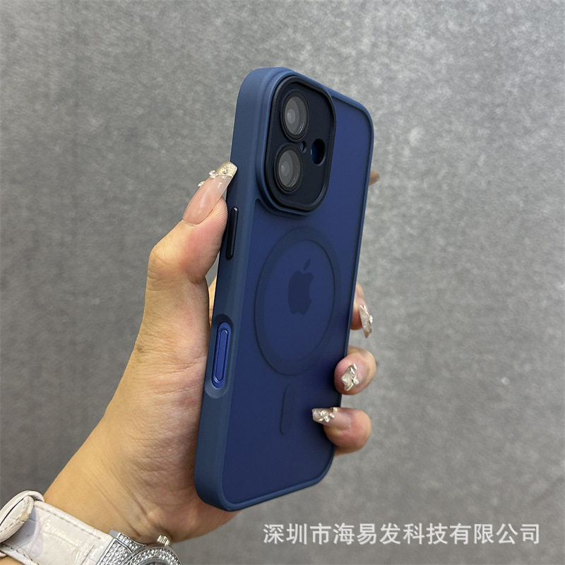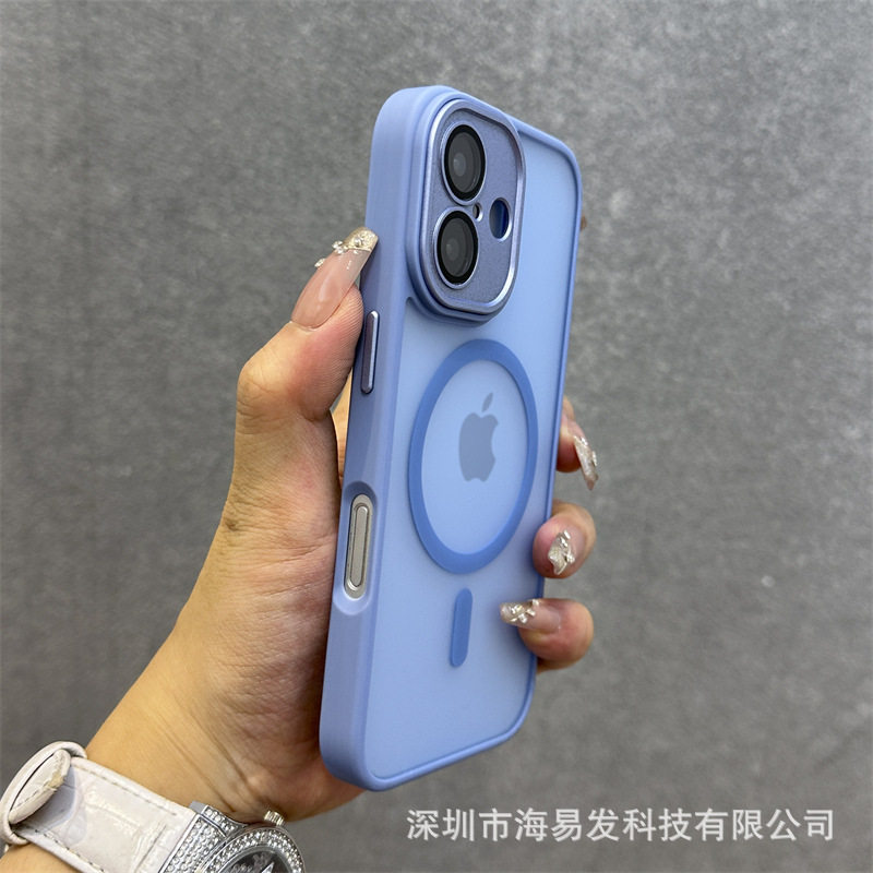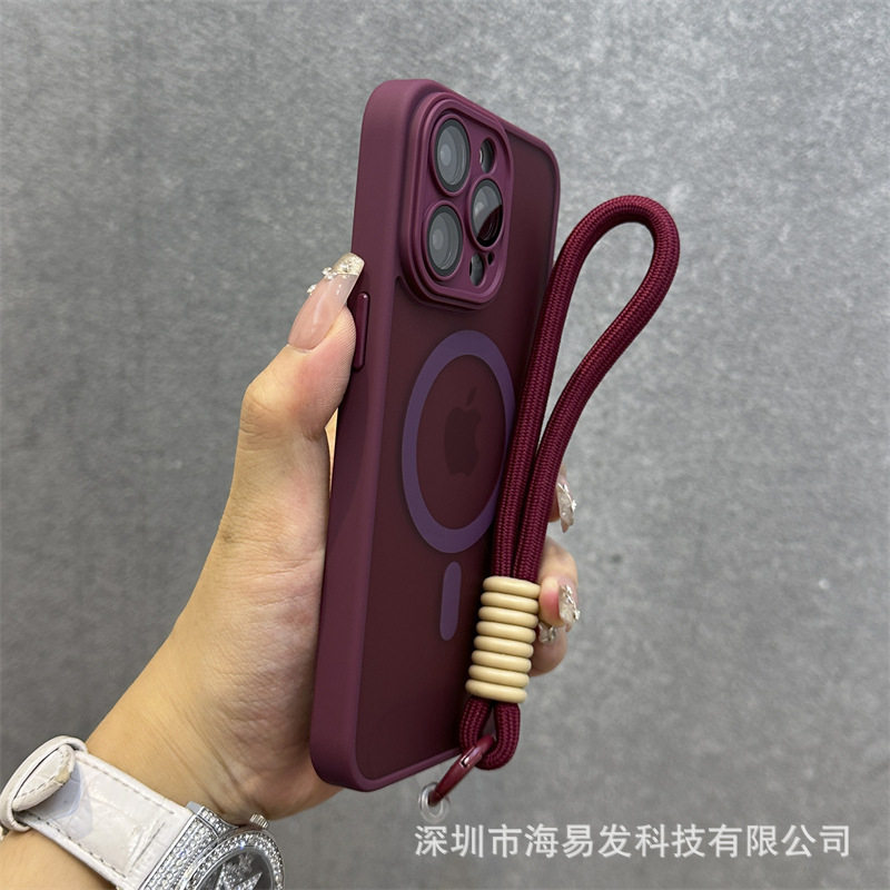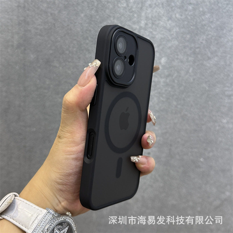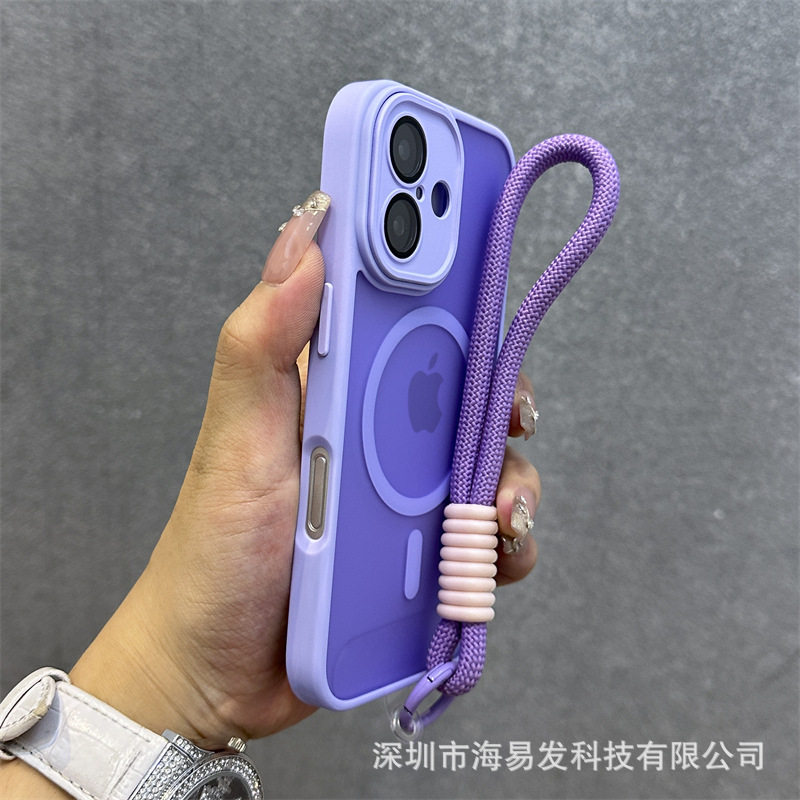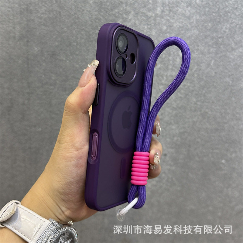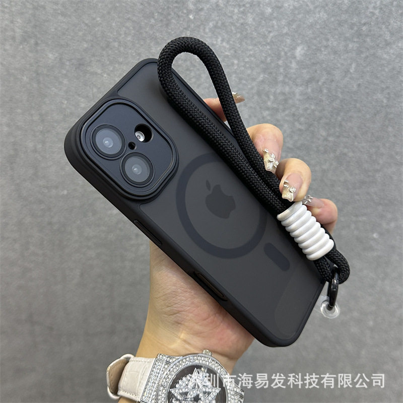 Skin-Feel Magnetic Frosted Mobile Phone Case iPhone 17 Lens Film All-Inclusive Hand Strap Anti-Fall