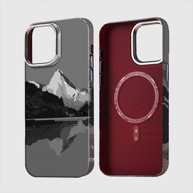 Suitable for Apple 16Promax Kevlar Magnetic Phone Case Iphone15 Creative Carbon Fiber Skin-Feel Protective Cover