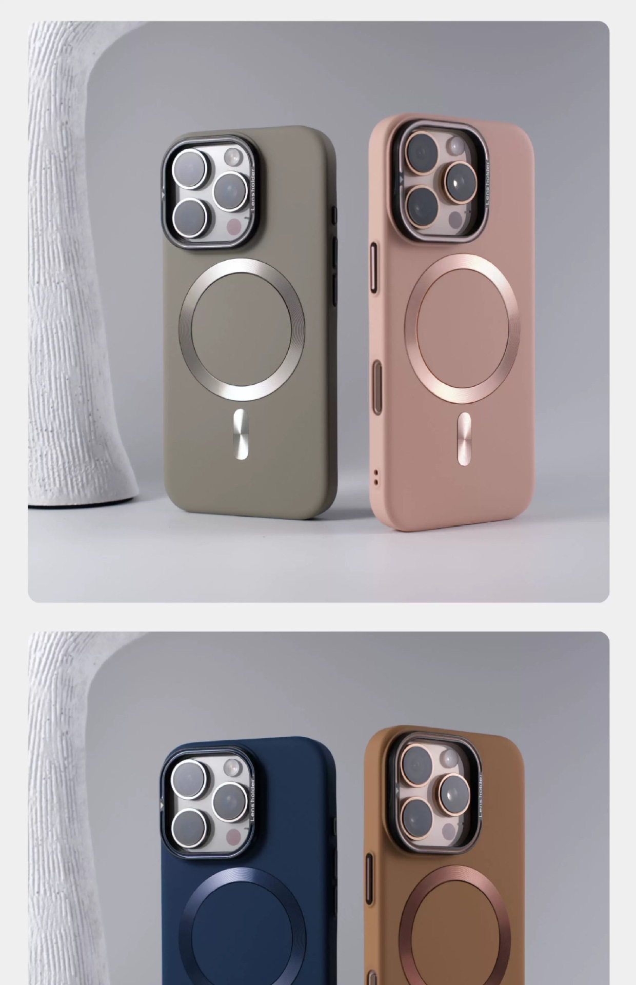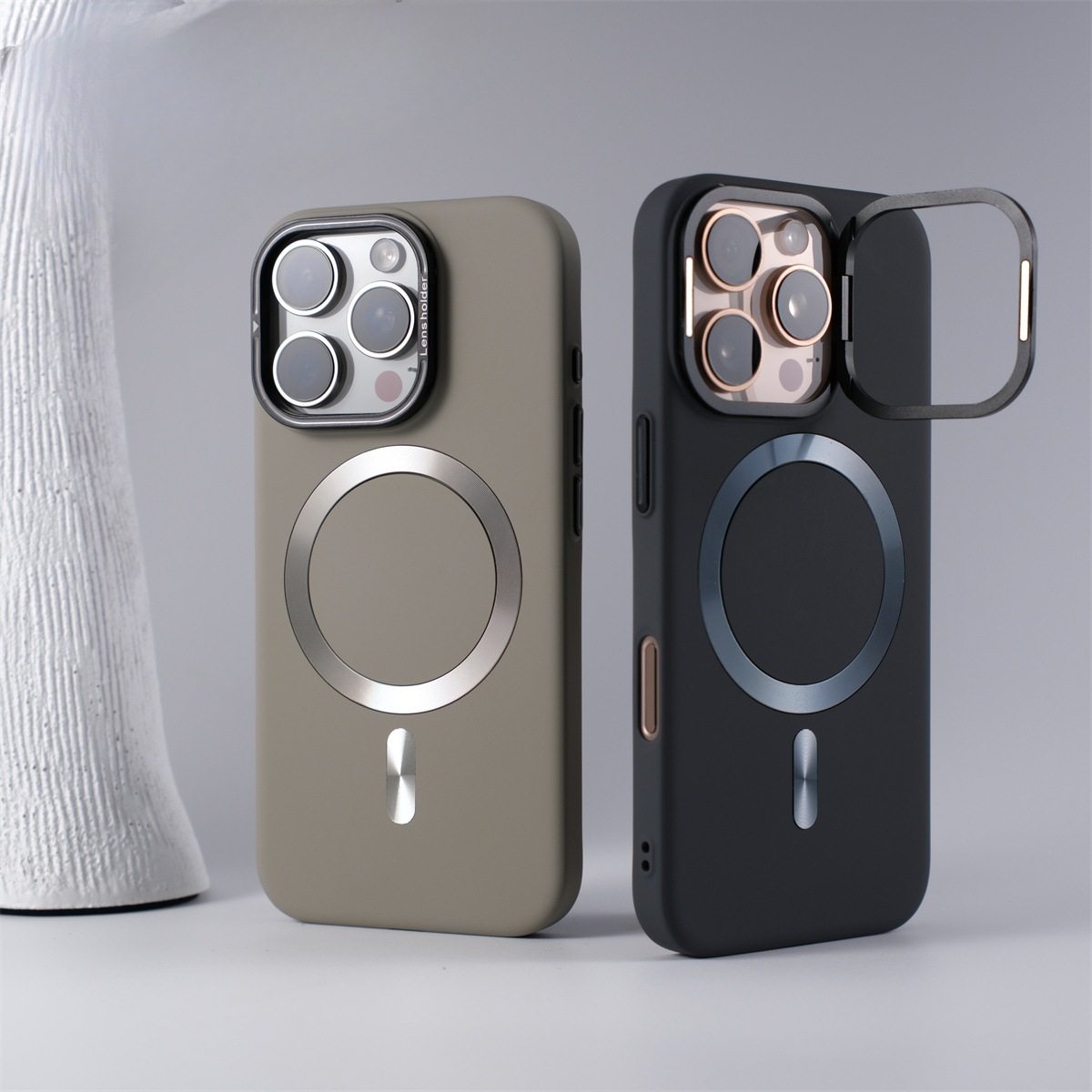 Suitable for Apple 17 Frosted Skin Magnetic Suction Apple 16 Promax Lens Holder High-End Anti-Fall Mobile Phone Case 15
